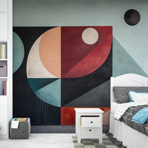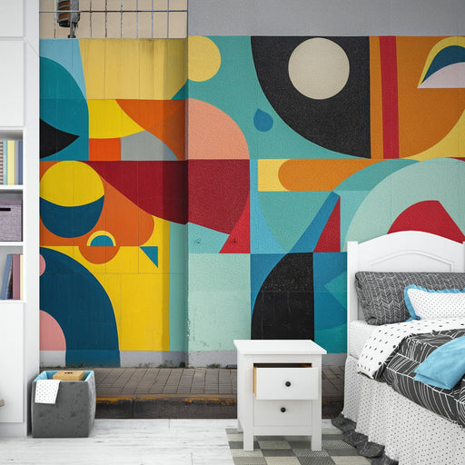 WonderMuralThis dynamic and colorful mural wallpaper transforms your interior into a modern work of art. Bold geometric shapes blend with vibrant colors to cr...