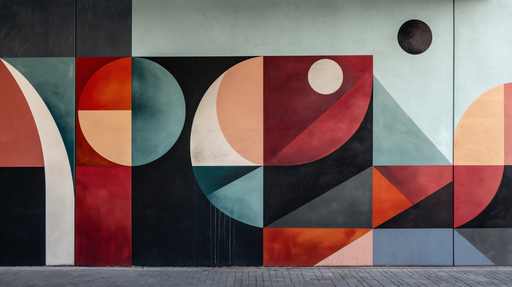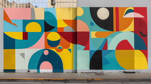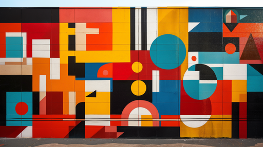 WonderMuralThis mural wallpaper features a bold geometric composition with abstract shapes and vibrant colors. The dynamic lines and blocks of bright colors, ...