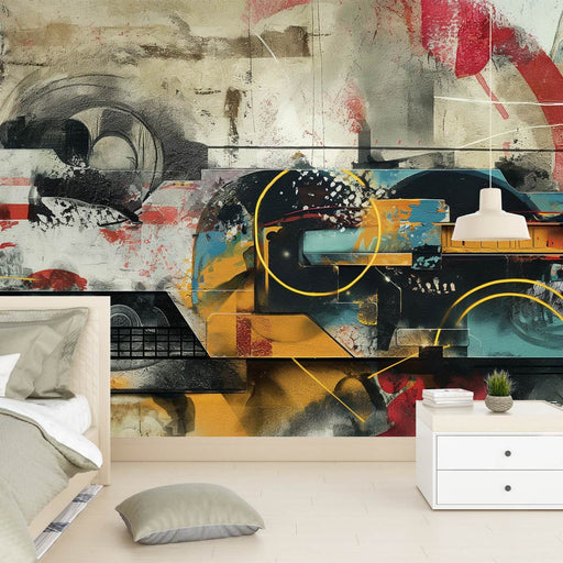 WonderMuralThis mural wallpaper captures the essence of street art with its vivid colors and abstract shapes. The shades of red, blue, and yellow intertwine ...