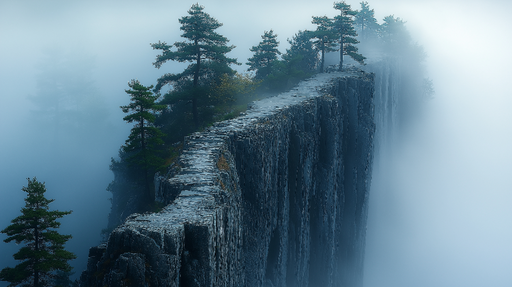 WonderMuralThis mural wallpaper offers a spectacular view of a steep path winding along a cliff, enveloped in a soft mist. The silhouettes of the trees add a ...