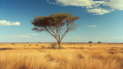 WonderMuralThis splendid mural wallpaper depicts a serene savannah landscape, featuring a solitary tree in the middle of a golden field. The warm tones and go...
