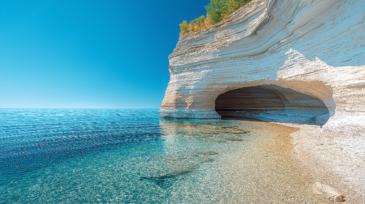 WonderMuralThis mural evokes a serene coastal landscape, capturing the essence of a marine cave overlooked by white cliffs. The shimmering turquoise waters cr...