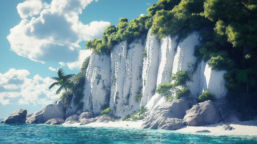 WonderMuralDiscover our mural wallpaper featuring a splendid coastal landscape, where majestic white cliffs rise above fine sandy beaches, surrounded by turqu...