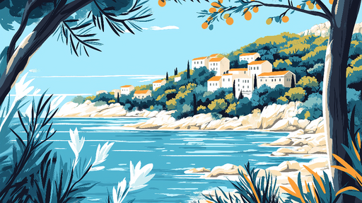View full detailsMural Wallpaper coastal landscape | Lively illustration of a Mediterranean village
