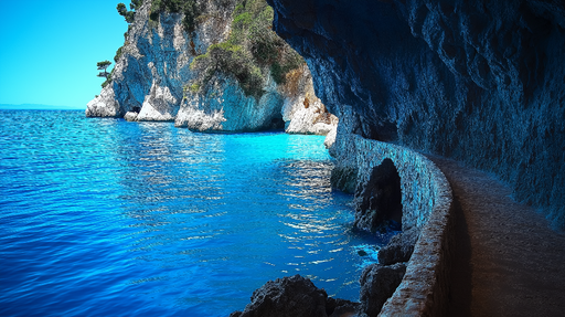 WonderMuralThis magnificent mural wallpaper features a captivating coastal landscape, where time-sculpted rocks meet the crystalline waters of a sunny sea. Th...