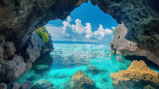 WonderMuralThis mural wallpaper depicts a natural cavity bordered by magnificent turquoise waters and a fine sandy beach, offering a soothing and refreshing v...