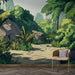 This mural wallpaper features a magnificent tropical jungle landscape, where majestic palm trees surround a sandy path lined with dense vegetation. The shades of green and touches of yellow add a lively and refreshing ambiance, instantly transporting you to a soothing natural setting.
