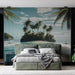 This mural wallpaper evokes an idyllic tropical island, where palm trees stand majestically above a brilliantly blue ocean. The harmony of colors between the clear sky and the shimmering waters creates a calm and relaxing atmosphere, inviting escape.