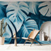 Mural Wallpaper tropical teal blue leaves | Patterns of lush leaves in soothing tones