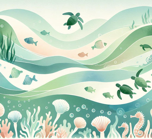 Turtle patterns bring a touch of exoticism and serenity to walls. For a complete marine decoration, also discover our best fish mural wallpaper with complementary patterns. These majestic marine creatures are represented in refined designs, blending artistic realism with stylized interpretations. Ocean blue and turquoise tones harmoniously blend with coral greens, creating a soothing color palette that instantly evokes the ocean depths. Each pattern captures the graceful movement of turtles, their distinctive shells, and their peaceful presence, transforming wall surfaces into true aquatic paintings.