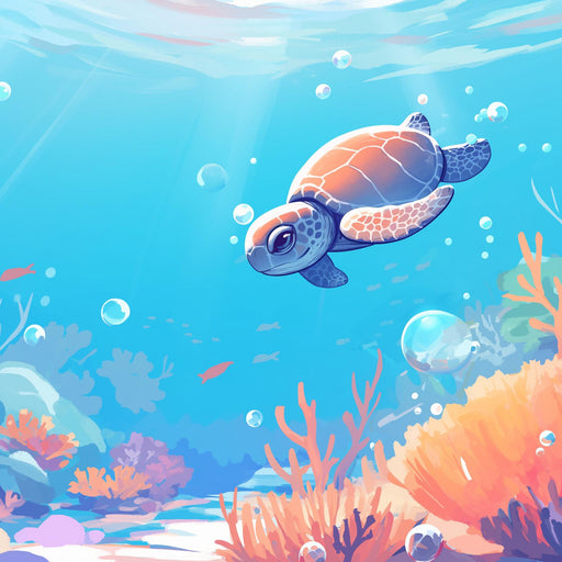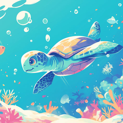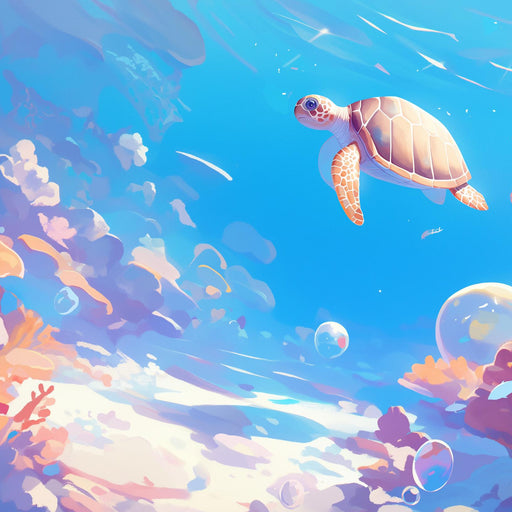 VisualsDive into an enchanting aquatic world with this wallpaper depicting a turtle swimming peacefully among colorful corals and sparkling bubbles. The s...