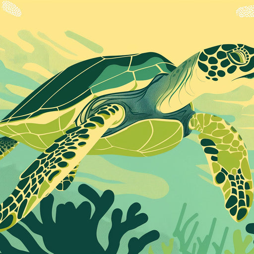VisualsThis wallpaper features a vibrant illustration of a sea turtle gracefully swimming underwater. The bright colors of green and yellow create a sooth...