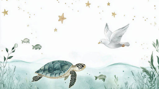 The collection offers spectacular turtle panoramics that immerse the room in an enchanting underwater atmosphere. These large-format frescoes showcase detailed marine scenes where turtles swim among coral reefs and seagrass beds. For a more varied oceanic ambiance, pair them with our majestic soothing whale mural wallpaper. Depth effects and plays of light create an illusion of movement, as if the turtles were really floating in water. More discreet patterns offer an elegant alternative with subtle repetitive designs, perfect for creating a zen atmosphere while maintaining the natural sophistication of these iconic creatures.