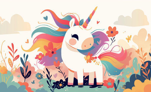 Dive into a magical universe with our collection of unicorn mural wallpapers. These captivating designs are perfect for creating a magical decor in children's bedrooms or creative spaces. Our rainbow mural wallpaper perfectly complements this enchanted world. Enchanting patterns, such as unicorns galloping under a starry sky or bright rainbows, add a touch of dream and imagination to your walls. For an even more magical ambiance, discover our fairy mural wallpaper with sparkling designs.