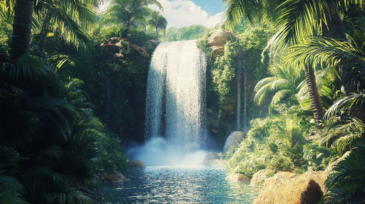 WonderMuralThis mural wallpaper illustrates a spectacular waterfall surrounded by lush vegetation. The refined details of the verdant foliage and the water re...