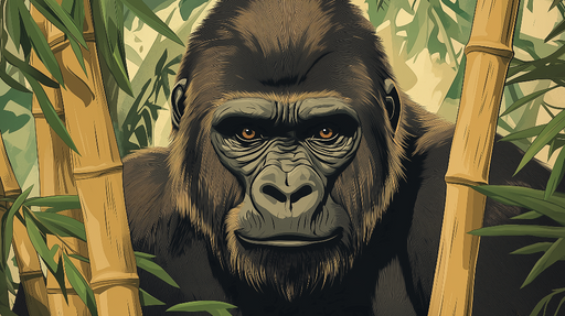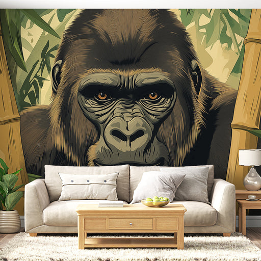 WonderMuralThis mural wallpaper features a striking illustration of a gorilla, capturing its piercing gaze and tranquil power amidst a bamboo forest. The fine...