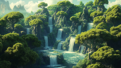 WonderMuralThis mural wallpaper unveils a captivating natural landscape with majestic waterfalls surrounded by abundant and lush vegetation. The shades of gre...