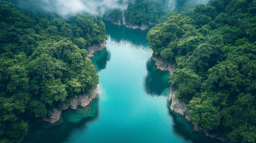 WonderMuralThis mural wallpaper captures the essence of a breathtaking natural landscape, with a turquoise river winding through a dense forest. The shades of...
