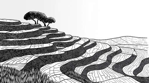 View full detailsMural Wallpaper landscape in relief | Stylized terraces and vegetation pattern