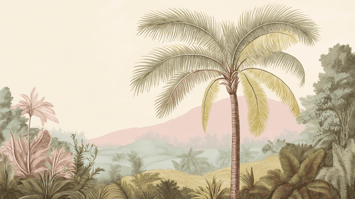 View full detailsMural Wallpaper tropical | Lush vegetation and delicately illustrated palm trees