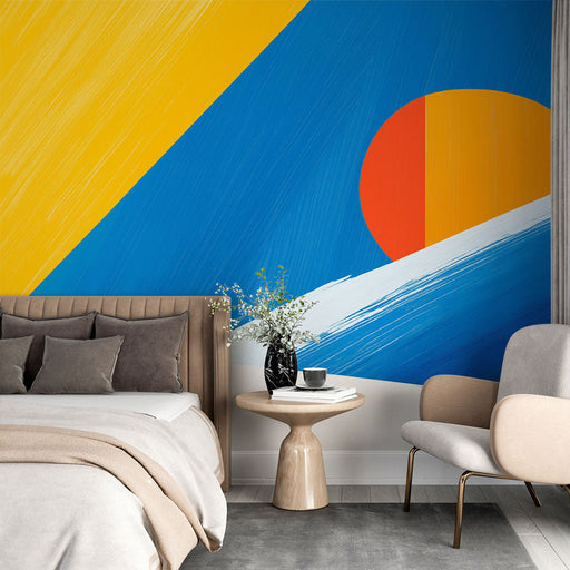 WonderMuralThis mural wallpaper features a captivating abstract design, blending shades of yellow, blue, and orange. The bold geometric shapes and fluid lines...