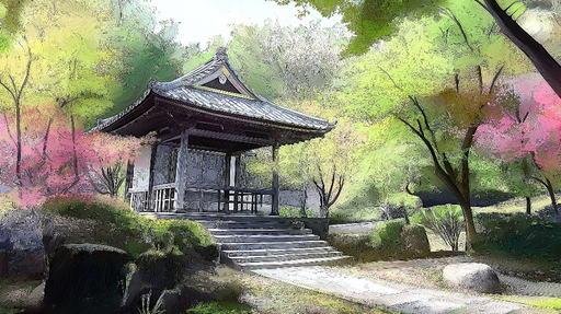View full detailsMural Wallpaper zen garden | Tranquil landscape with cherry blossoms and traditional pavilion