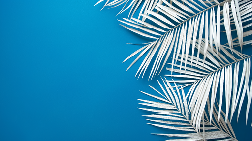 WonderMuralThis elegant mural wallpaper highlights white palm leaves delicately positioned on a vibrant teal blue background, creating a striking and modern c...
