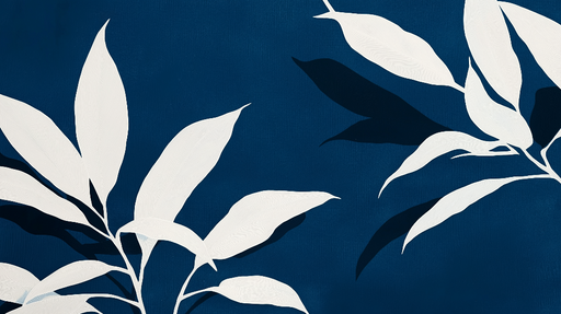 Mural Wallpaper teal blue | White leaf pattern on deep blue background