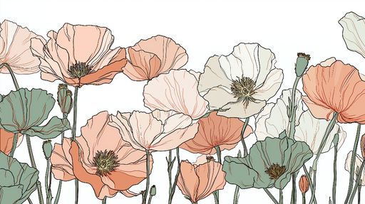 WonderMuralOur superb mural wallpaper features an elegantly sketched poppy motif, offering a soft palette of peach, cream, and aqua tones. The delicate and st...