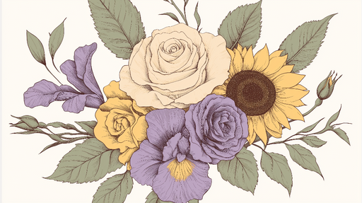WonderMuralThis mural wallpaper highlights a refined floral composition featuring delicate roses, a bright sunflower, and elegant irises. With soft shades ran...