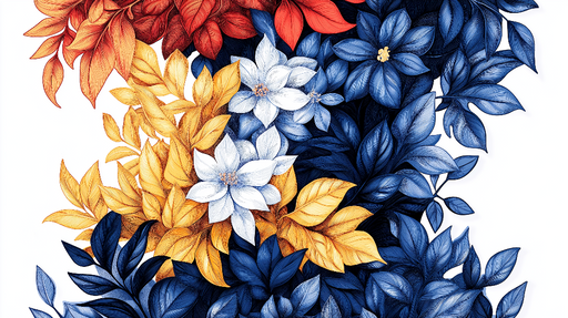 WonderMuralThis vibrant illustration features lush foliage and bright flowers blending shades of red, yellow, white, and blue. The delicate lines and striking...