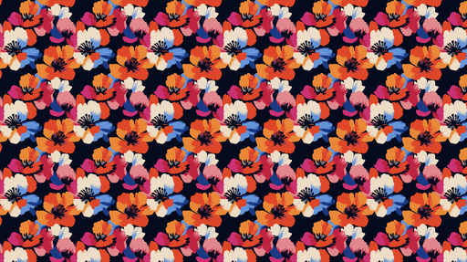 WonderMuralOur beautiful mural wallpaper features a vibrant pattern of flowers in bright colors, ranging from pink to orange, contrasting against a deep black...