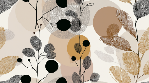 View full detailsAbstract botanical wallpaper | Leaf and circle patterns in soft tones