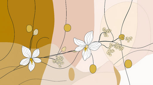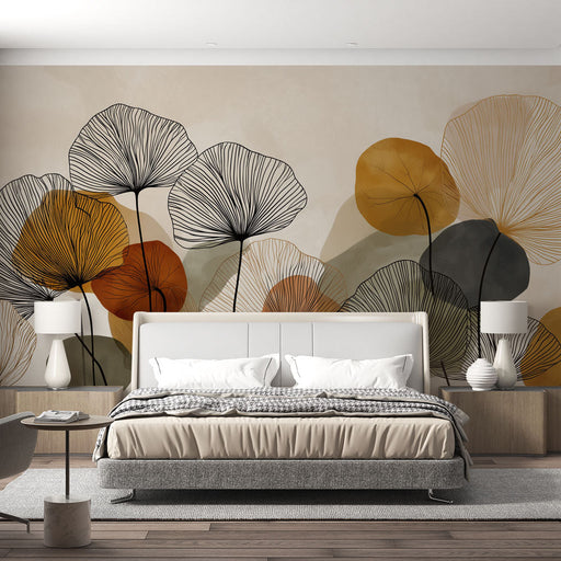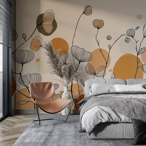 WonderMuralThis wallpaper features an abstract floral design, combining elegant black lines and stylized flowers on a background with soft beige and mustard t...