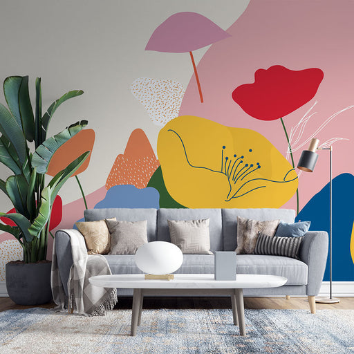 WonderMuralDiscover our Mural Wallpaper with abstract floral design, showcasing vibrant flowers with contemporary shapes on a soft pastel background. Warm and...