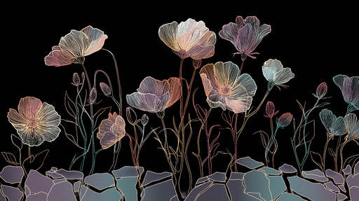 View full detailsAbstract floral wallpaper | Stylized flowers in soft tones on a black background