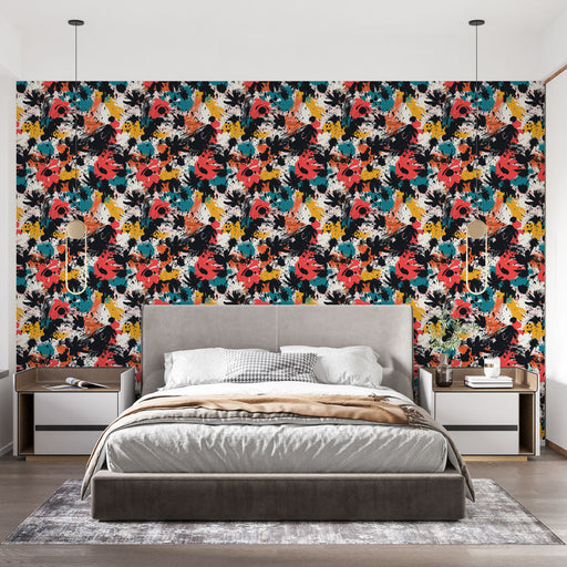 WonderMuralOur wallpaper is distinguished by an abstract floral design, showcasing colorful flower patterns and paint splatters. The pink, blue, yellow, and b...