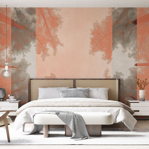 View full detailsAbstract forest mural wallpaper | View towards the sky with soft shades of orange and gray