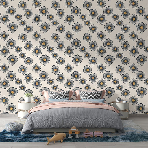 WonderMuralOur beautiful mural wallpaper features a stunning vintage flower pattern delicately drawn, alternating between shades of black and touches of yello...