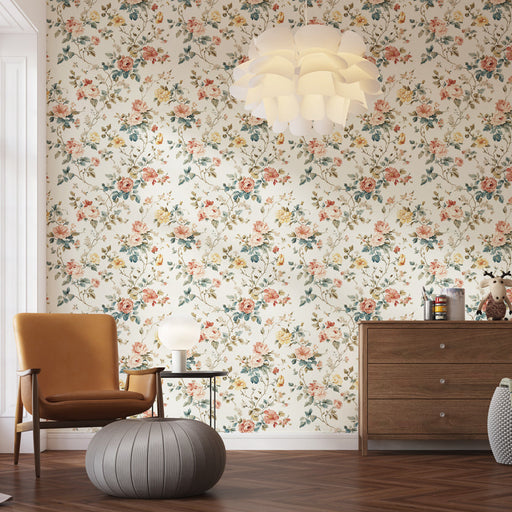 WonderMuralOur vintage floral mural wallpaper features an elegant design with colorful flower and foliage patterns on a soft beige background. This traditiona...