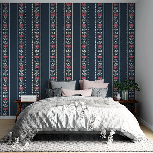 View full detailsMural Wallpaper floral vintage | Striped pattern with roses on navy blue background