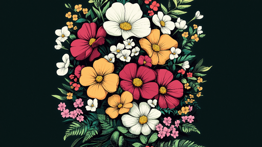 Mural Wallpaper floral vintage | Colorful flowers on a dark background