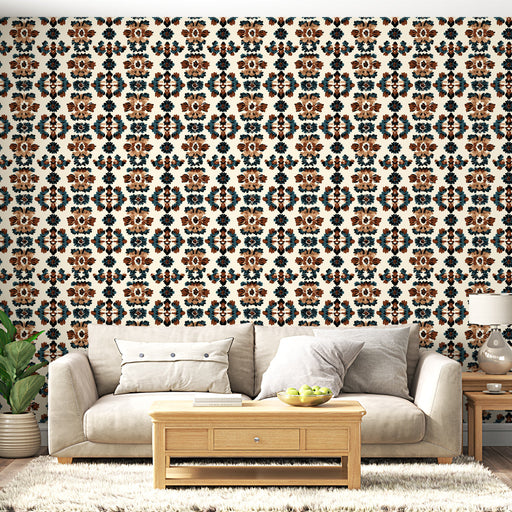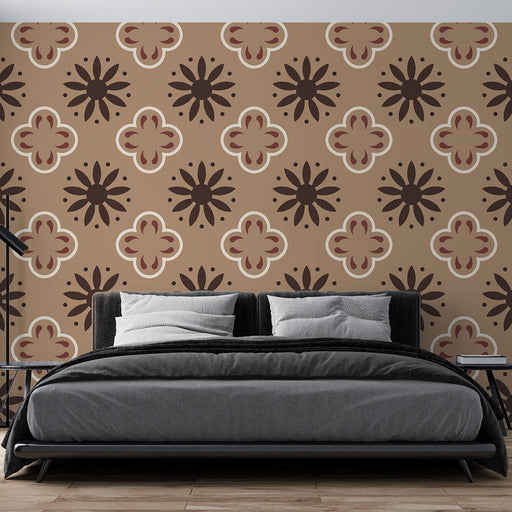 Studio SamaDiscover our mural wallpaper floral with vintage patterns in warm shades of beige and brown. Ideal for creating a welcoming and retro atmosphere, t...