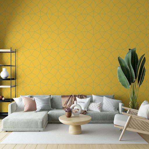Studio SamaAdd a modern and sunny touch to your interior with our geometric mural wallpaper featuring a hexagonal design. The bright yellow background is perf...