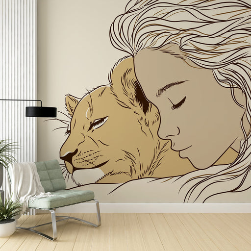 Zobrazit celý detailTapeta s lvem a ženou | Něžná ilustrace ženy a lva