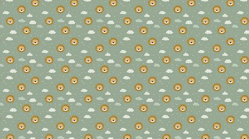 Zobrazit celý detailTapeta s lvy a mraky | Hrací prvky s usmívajícími se lvy na zeleném pozadí