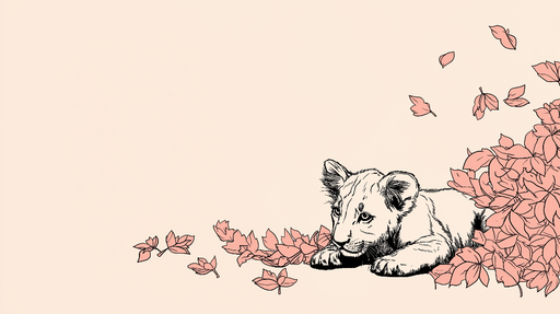 WonderMuralTento tapeta zdůrazňuje roztomilého lvačího mláděte, jemně ilustrovaného, odpočívajícího mezi růžovými listy na jemném pozadí. Kombinace odstínů bí...
