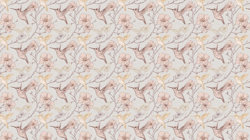 WonderMuralTento tapet zdůrazňuje okouzlující motiv kolibříků kvetoucích mezi jemnými květinami. Ilustrace v odstínech růžové, zlaté a béžové vytvářejí teplou...