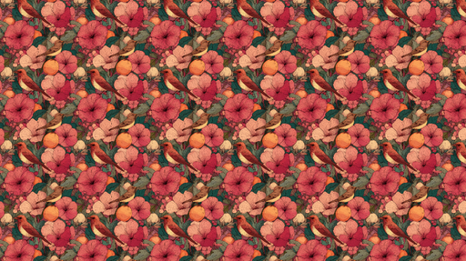 Zobrazit celý detailTapeta s ptáky a květinami | Barevný vzor s ptáky a květinami různých odstínů