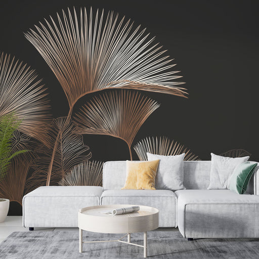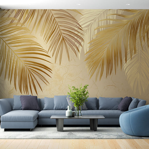 WonderMuralTato fototapeta má dynamický design s zlatými palmovými listy, vytvářející teplé a letní prostředí. Jemná textura a rafinované detaily listů přináš...